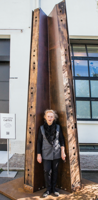 Among top Italian artists who have reached important international goals with their monumental art works there is of course Maria Cristina Carlini, rare feminine presence in a masculine world: she brings out the soul from iron, soil, logs, shaping with her hands majestic ancestral sculptures that dialogue by contrast with contemporaneity. Her artistic presence starts in the 70’s, from California, leaving a mark in America, Asia, Europe, in squares and museums, until “the new city that grows”, which becomes a symbol of the Expo in Milan. At Superstudio, in 2013 she experimented the interaction between art and design. Her last exhibition “Geologie, memorie della terra” is set up in the former Church of San Sisto in Milan until 8th September side by side with the art work by Francesco Messina. The “strength” of a dedicated woman talks more than a thousand words.